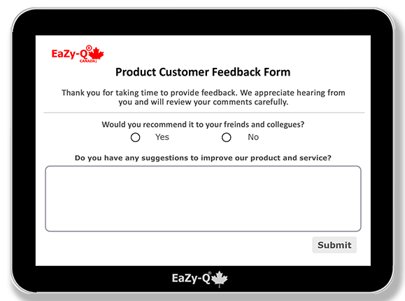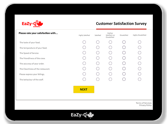 Let us take a brief moment to explains how this whole thing works and makes difference in customer’s day-to-day interaction and experience more comfortable and enjoyable because making your customer happy is the key to any successful business. EaZy-Q® comprehensive Customer Feedback System provides an easy way to create templates of dynamic user definable questionnaire through web based CMS (Content Management System). Once the questions are defined, User can attach and schedule these templates single or multiple devices. When the schedule time reaches, EaZy-Q® Customer Feedback system will automatically load the newly created templates to the attached devices. These devices can either floor mount or table top based on the business needs so that customer can provide the feedback conveniently. The table top devices are portable in nature and can also be used on the move.