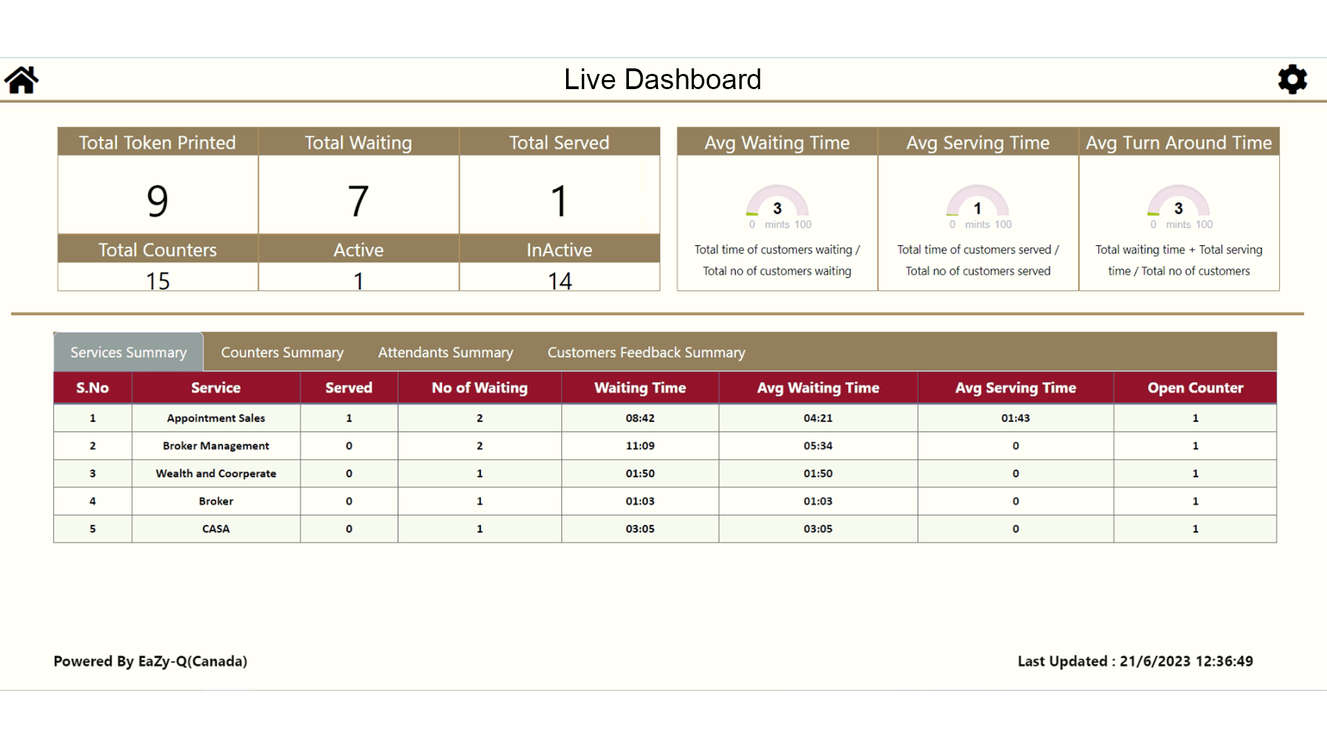 Queue Management SystemEaZy-Q® is an electronic queue system is completely IP based which makes it more scalable and robust than any product available in the market. We have online booking (through website and mobile application) portal that makes it easier for the customers to manage their visit more efficiently and conveniently. This tool helps business to reduce number of people waiting in their premises. Our self-serve Queue management kiosk takes away the stress of reception managed token number distribution. In order to provide controlled distribution of the token numbers, our system also empowers businesses with our reception managed ticket dispensers that create more responsive and adequate environment for everyone. it also provides tools like Real Time Analytical & Graphical report, Live Dashboards, Alerts and notifications (and much more) to improve staff efficiency and also plays a key role in increased customer satisfaction. EaZy-Q® provides both Wired and Wireless queuing system technology which makes it easier & flexible for our clients to manage their infrastructure based on their needs. it is completely IP based which makes relocating devices efficiently, cost effective and seamless..